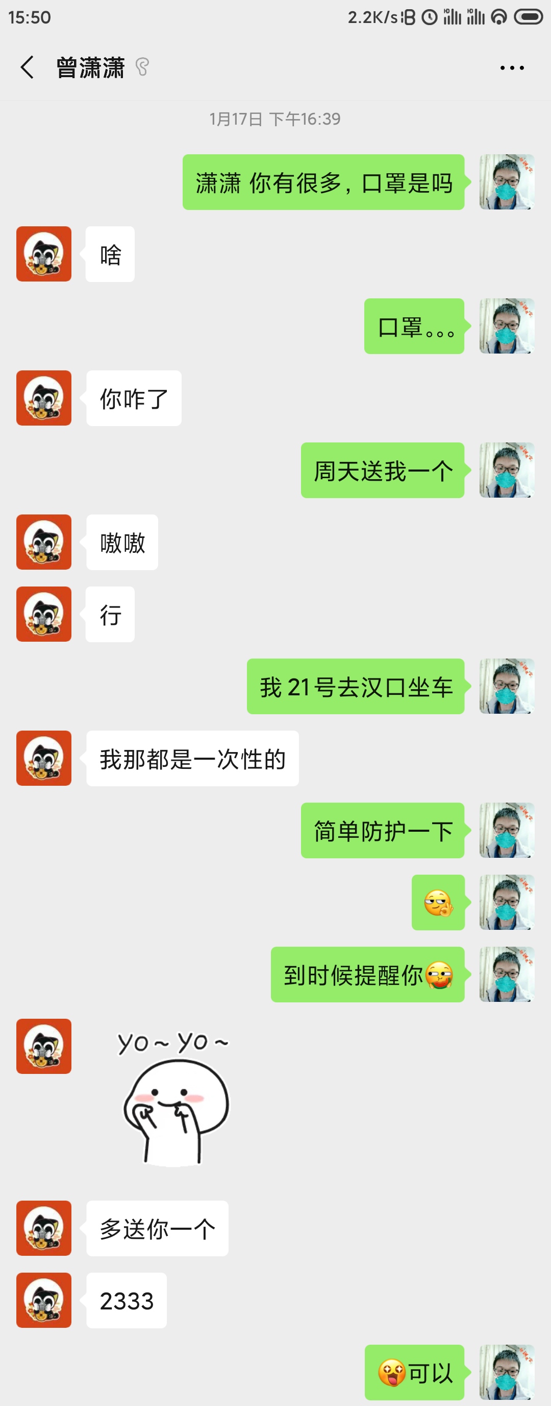 希望回家的路上能有个保障品,但是好像又不会很严重,我就懒得屯口罩了哈,借一个用用就行了。