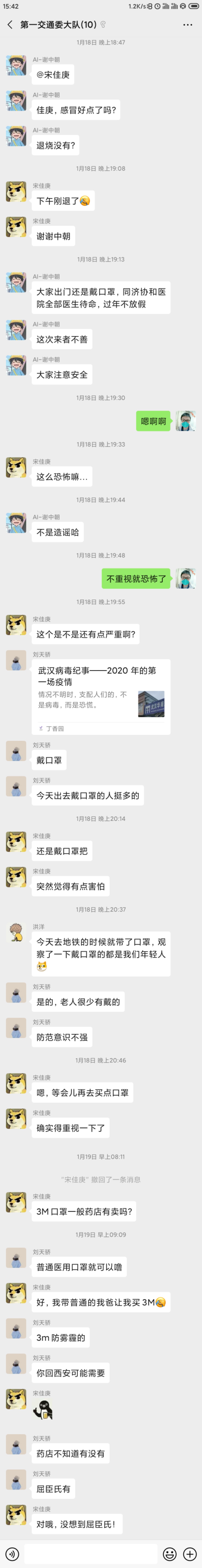 晚上大家相互关注了一下健康,和口罩哪里买的问题。